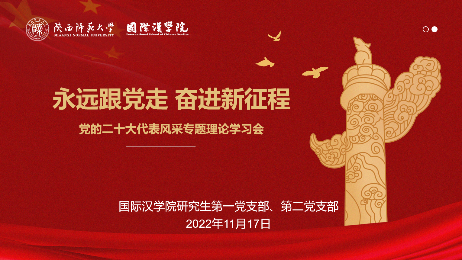 研究生第一、第二党支部全体党员于11月17日下午,在学院党员活动室开展“永远跟党走 奋进新征程——党的二十大代表风采”专题理论学习会。此次学习活动由研究生第二党支部书记张玉曦主持。