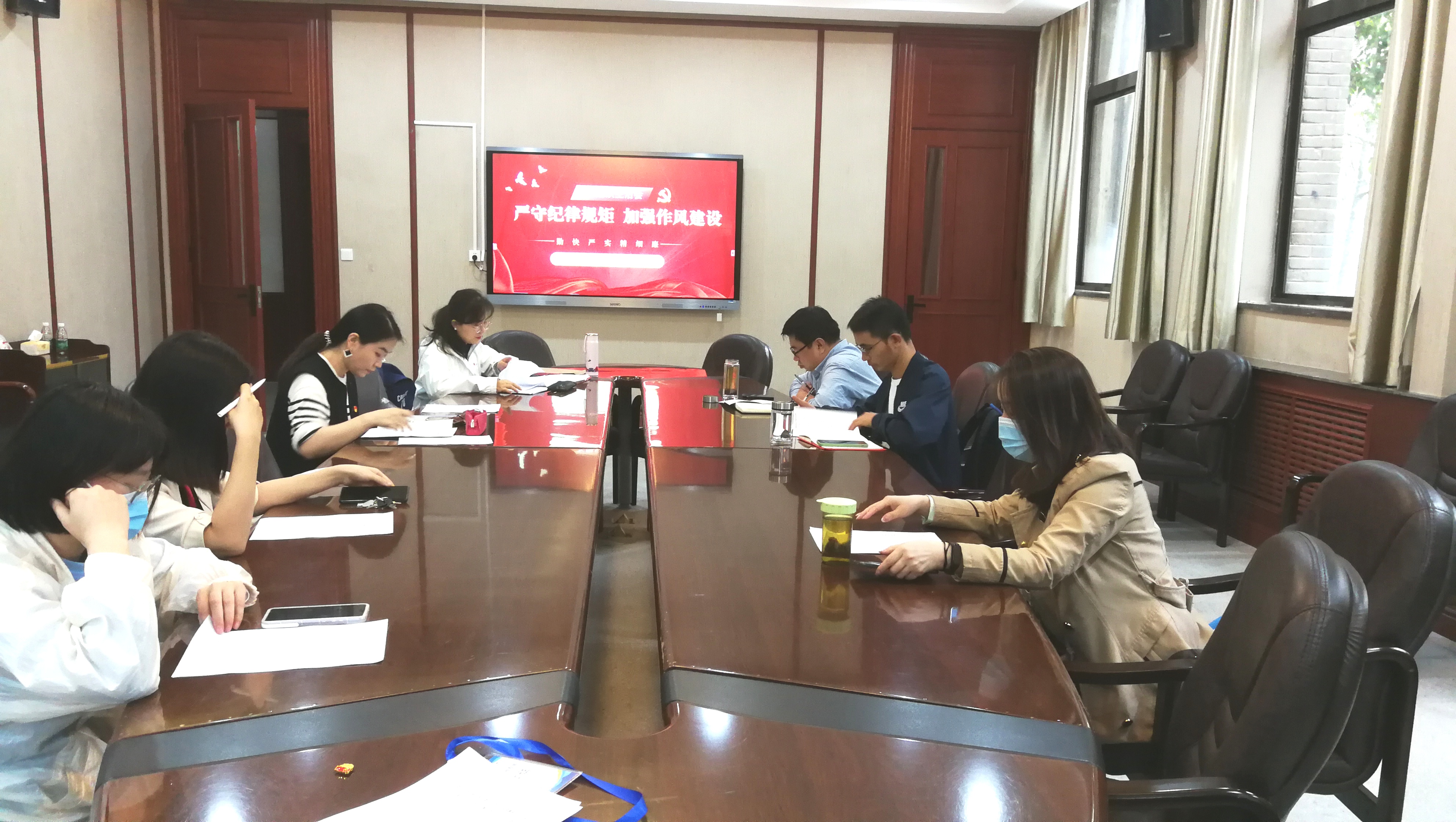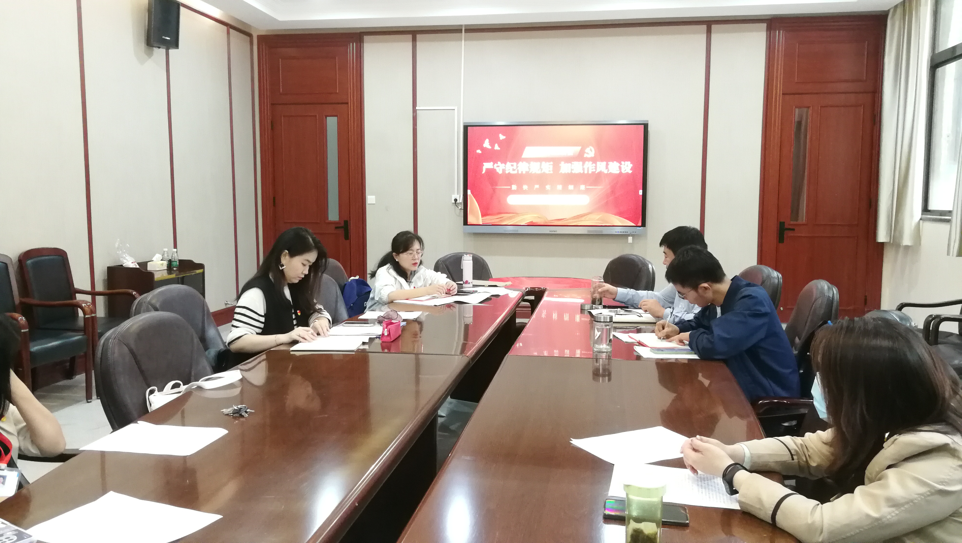 2022年9月21日下午2:30,国际中文教育党支部全体党员在学院一层会议室,召开以“严守纪律规矩、加强作风建设”为主题的组织生活会,生活会由支部书记刘琨主持。