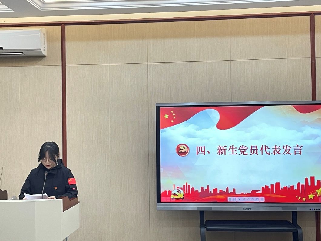 最后,马兰再次对新生党员的加入表示欢迎,并向他们提出了三点嘱托。一要以高标准严格要求自己,牢记党员使命;二要加强理论知识学习,不断提升自身政治素养;三要学好专业知识,发挥党员先锋模范作用,利用自身的聪明才智为学院贡献力量!