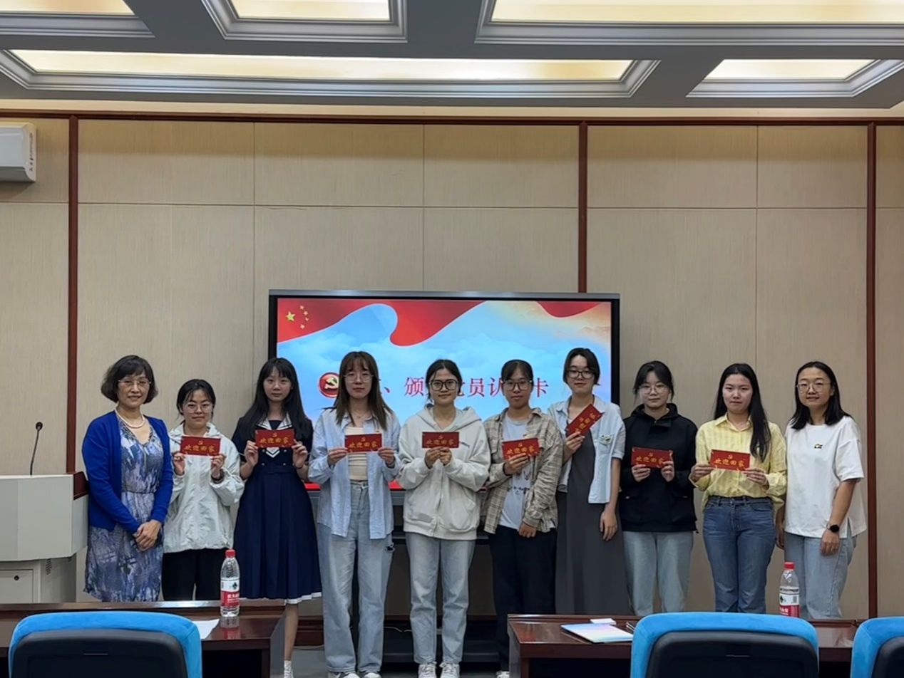 首先,研究生第一党支部书记谷思璇同志介绍了学院两个支部的具体情况,包括人员组成、有关党员发展、支部建设的活动,以及所开展的主题党课和党日活动等。之后,在“党员互认”环节,新老党员分别进行了自我介绍。随后,马兰和翁思洁为新生党员颁发“党员认家卡”。