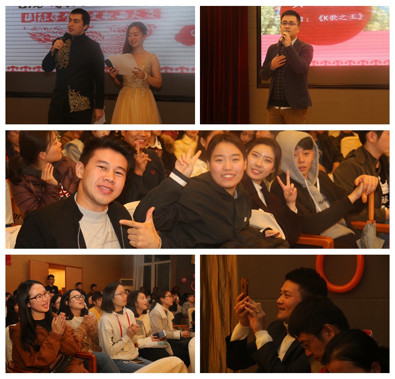 随后,一号选手来自贝宁的杨过用其字正腔圆、饱含深情的中文歌曲《十年》正式拉开了本次大赛的帷幕。参赛选手发音准确,感情投入,整场比赛曲风多样,精彩不断,赢得了观众的阵阵掌声,为大家带来了一场无与伦比的视听盛宴。其中,来自格鲁吉亚的二号选手马丽雅为大家带来了一首《听海》,感情充沛、婉转动听,最终以97.3的全场最高分获得了本次大赛的第一名。来自土耳其的七号选手何浩自弹自唱,用吉他深情地演绎了《父亲》,寄托了对父亲无限想念,最终以97的高分获得了第二名。在评分环节,留学生办公室的黄璐老师还为大家带来了一首《K歌之王》,将现场气氛再次推向高潮。在观众们的阵阵掌声中,本次大赛圆满落下帷幕。