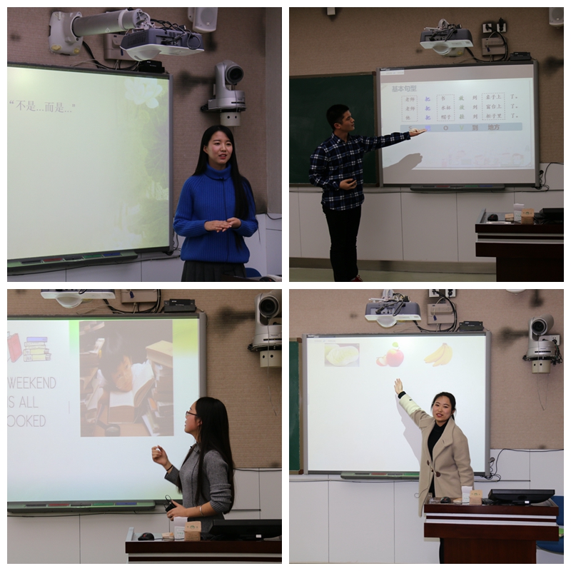 副院长刘琨主持了本次比赛。决赛开始前,由刘琨老师详细介绍了比赛规则,决赛采取现场打分、现场公布结果的形式。各位同学采取归纳法、讲授法、练习法、直观演示法等丰富多彩的教学方法对自己准备的、以不同学习阶段的留学生为教学对象的知识点进行讲解,比赛现场热情洋溢、气氛活跃。
