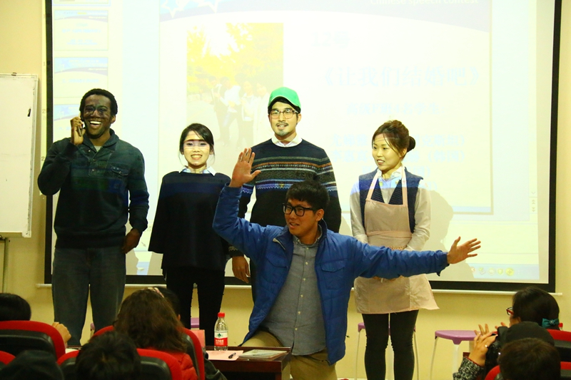 经过激烈比拼,来自高级E班和F班的何浩、尤娣雅等人带来的情景剧“国际范八宝粥”和“让我们结婚吧”荣获一等奖,来自土耳其的孟浩然、贝宁的杨过、苏丹的范小雨、宁静和高行获得二等奖,其余选手获得三等奖。本次比赛的评委,耽美小说