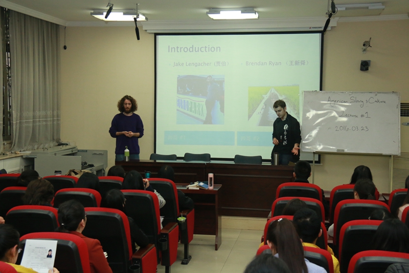 迎来了新一批美国富布莱特项目留学生。其中来自美国马萨诸塞州立大学的“93后”留学生贾柏和来自美国密西西比州立大学的“95后”留学生王新舜两个“小鲜肉”尤其活跃,同是攻读中国语言文化和汉语教学专业的这组CP不谋而合,以“美国俚语与文化”为题,拉开了耽美小说