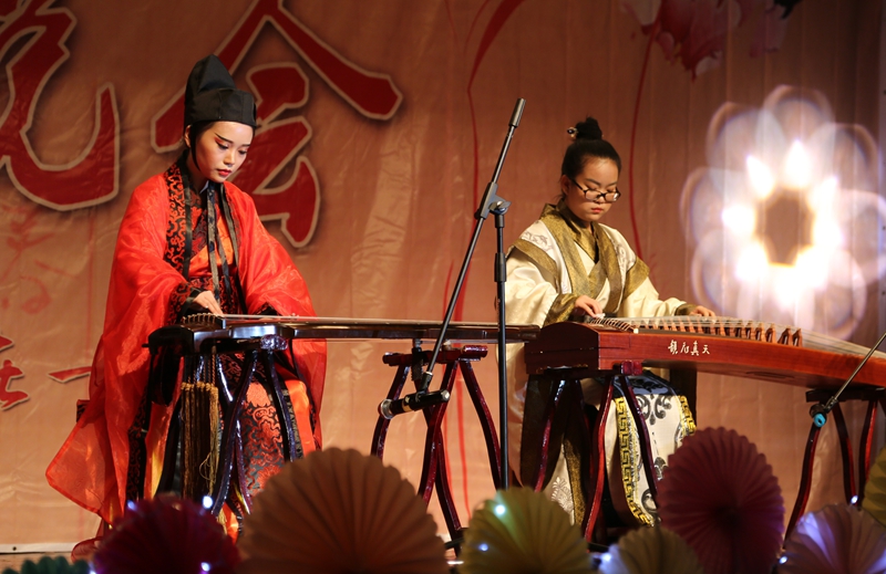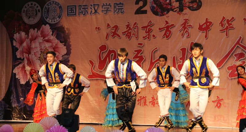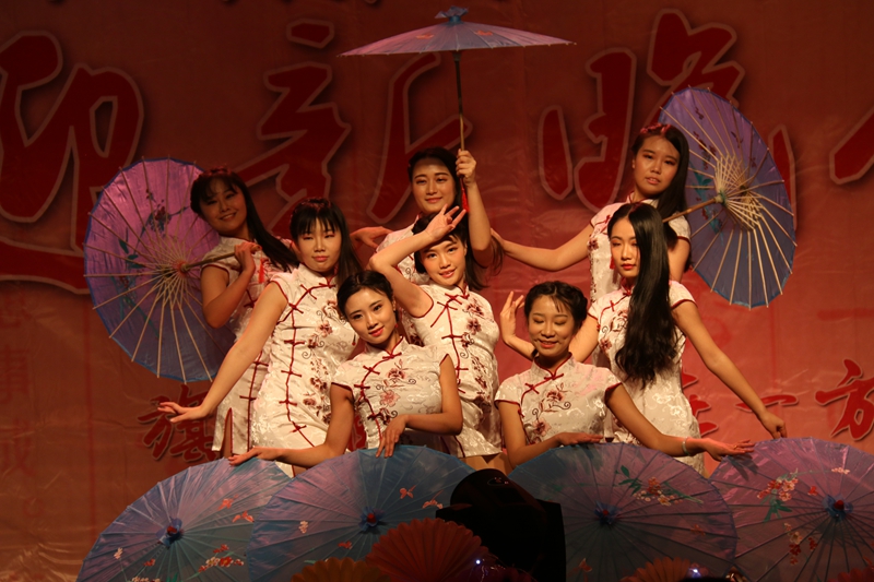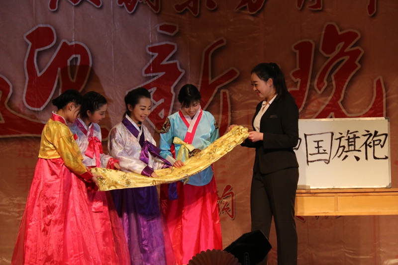 除了旗袍走秀,其余节目也饱含中国文化古典韵味。8名女生手打油纸伞,表演了舞蹈《桃花谣》。来自2013级汉语国际教育专业的6名同学将经典琼瑶剧《还珠格格》《情深深雨蒙蒙》改编成幽默喜剧《紫薇去哪儿》,引来现场阵阵笑声。来自红烛艺术团的三名女生用筝、笛子、古琴演奏了经典乐曲《沧海一声笑》,其中古琴表演者的“东方不败”扮相引起了全场轰动。四名中国学生和来自美国、韩国、土耳其、哈萨克斯坦、摩洛哥的五名留学生用六种语言朗诵了戴望舒的诗歌《雨巷》。来自乌克兰、贝宁的留学生联合学院教师一起演唱了中国流行歌曲,12名哈萨克斯坦籍留学生表演了哈萨克斯坦民间传统舞蹈。最后,伴随着一首《茉莉花》,所有中外学生模特身着旗袍走上舞台,至此,这场旗袍主题迎新晚会圆满落下帷幕。
