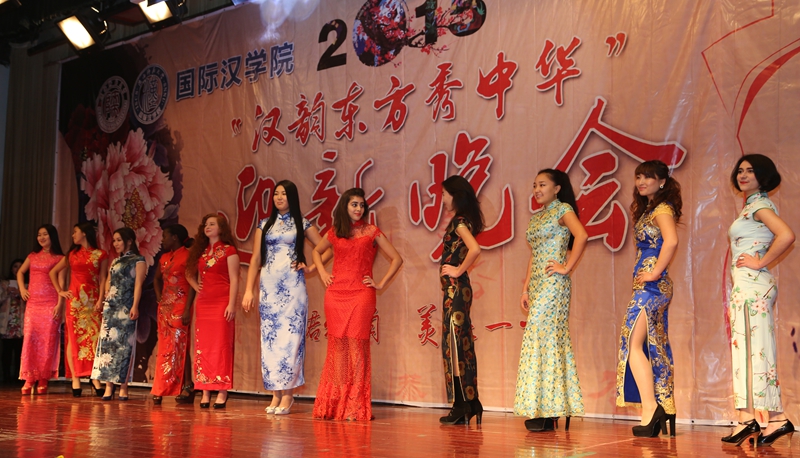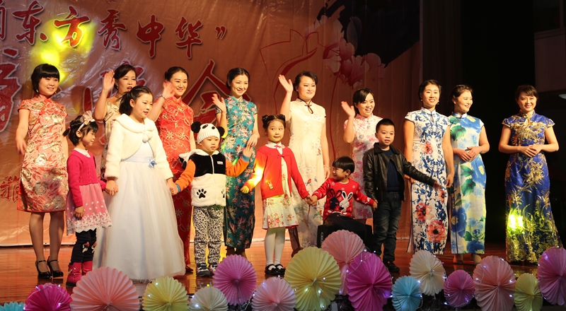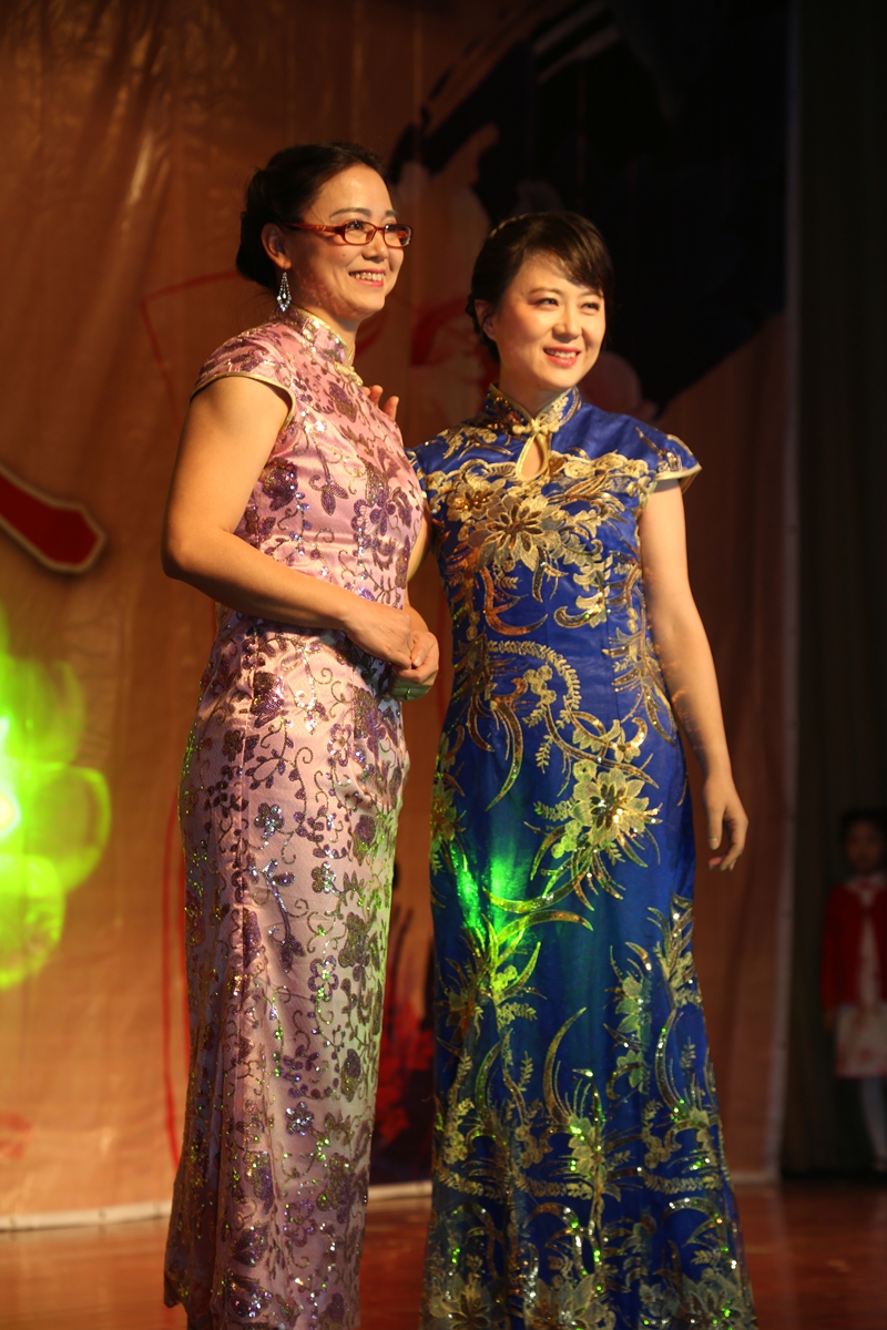 的12名女教师化身为幕间剧中的“妈妈”,带着自己的孩子在舞台上演绎了旗袍的传承。14名汉语国际教育专业的女研究生身穿各种样式的旗袍,手持二胡、笛子、葫芦丝、纸伞、灯笼、剪纸等中国传统文化代表符号,讲述了“我”做了对外汉语教师后,把旗袍文化发扬光大。来自美国、法国、哈萨克斯坦、吉尔吉斯斯坦、摩洛哥、津巴布韦的11名女留学生的旗袍走秀则展示了中外融汇的别样美感。