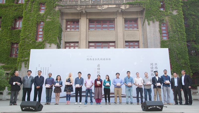 留学生乌兹别克斯坦籍晓爱,吉尔吉斯斯坦籍爱奈,巴基斯坦籍王娜、王刚,印度籍上课,土耳其籍张帅、何浩,意大利籍波浪等留学生代表参加了活动,用中文表达了对中国的热爱,对师大的情怀和对读书的理解,并接受了组委会赠送的系列丛书。