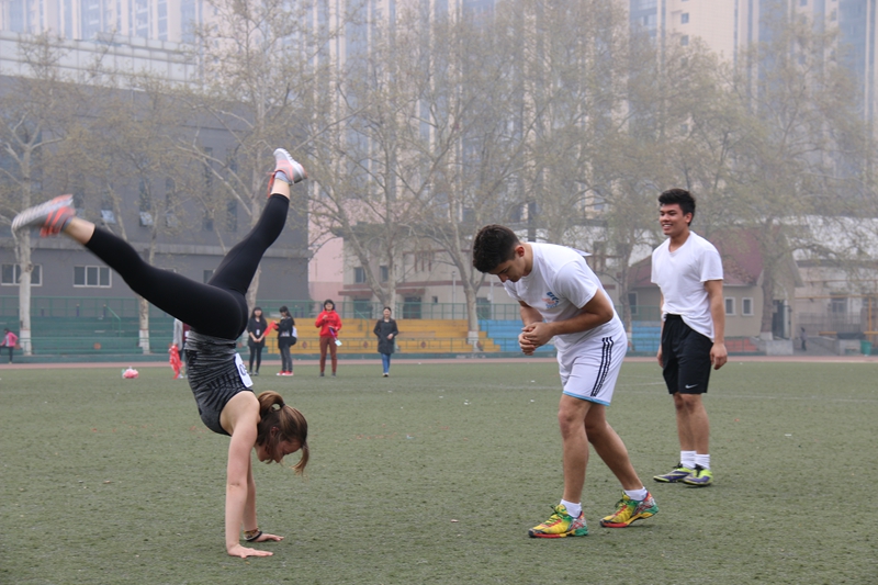 为扩大运动会的参与范围,争取锻炼健身“全覆盖”。本次运动会还特设了撕名牌、背夹气球、背对投掷等趣味项目,学院老师与学生们同场竞技,异常激烈。在撕名牌比赛的场地上,来自韩国的褚美花、金炳主和学院教师孙建伟、王作良“厮杀激烈”,他们一点都没有因为对方的身份而“照顾客气”,双方都全身心投入“战斗”,最终年轻的韩国学生们获胜。运动会在中外共竞、师生同乐的气氛中圆满落下帷幕。