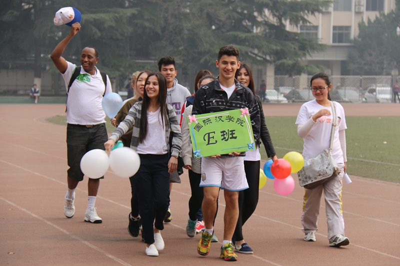 来自哈萨克斯坦、美国、韩国、俄罗斯、土耳其、澳大利亚、波兰等30多个国家的留学生组成的14支代表队和中国研究生、本科生组成的2支代表队依次进场。他们手拿自己制作的加油道具,口喊独具特色的助威口号,气势昂扬走过主席台。