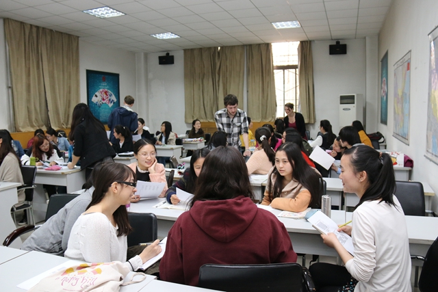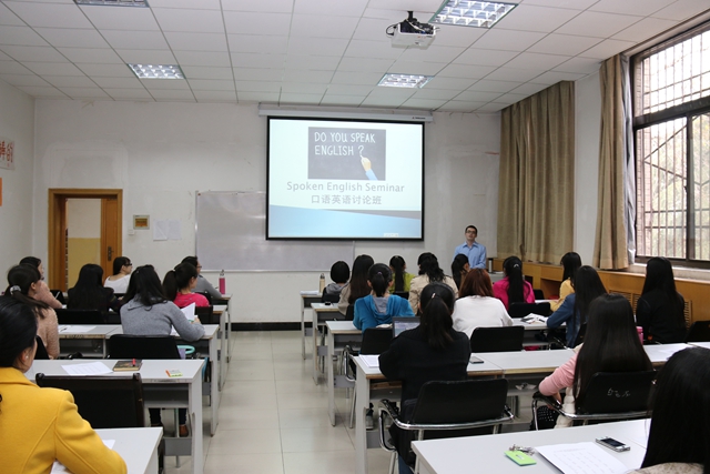 多媒体教室开课,吸引60余名师生参与。本次课堂突出英文学习中的“说”,通过“一对一辅导”等教学方式,发现并纠正中国学生在英文口语发音中存在的问题。