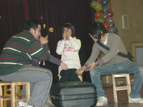 比赛在狂龙武协精彩的武术表中拉开帷幕,主持人宣布完比赛流程后,各代表队纷纷亮相。本次参加比赛的还有大学生挑战科技协会、海燕爱心社、紫云相声社、心理学社、西藏锅庄舞协会等社团。第一轮比赛是“PPT展示”,各队由一名代表上台通过PPT介绍社团特色和活动剪影。对外汉语协会成员艾多斯以幽默风趣的语言和精心制作的幻灯片为大家展示了协会的风采,博得现场观众的热烈好评,可谓是首局告捷。第二轮的才艺比拼环节,各社团“八仙过海,各显神通”,场面精彩纷呈,热闹非凡。对外汉语协会由留学生们自编、自导、自演的话剧以他们在中国的所见所闻为背景,主题中融入了自己的真实感受,不但幽默诙谐,还展示了留学生在耽美小说
