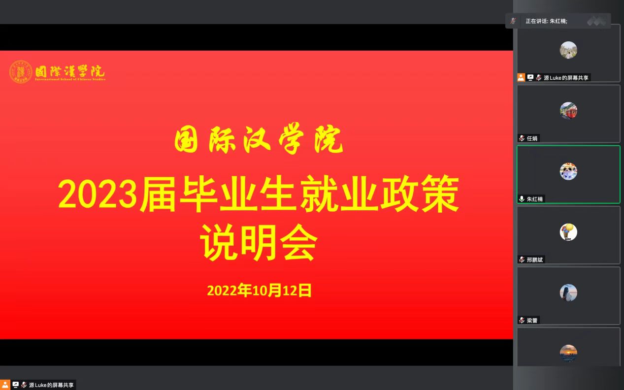 在线上召开2023届毕业生就业政策说明会。团总支书记兼研究生辅导员朱红楠、研究生兼职辅导员梁蕾和陆源及2023届毕业生参加了本次会议。