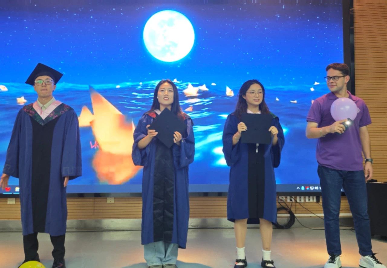 2025届中外学生毕业典礼暨2024-2025学年综合表彰大会在雁塔校区崇鋈楼一层学思堂隆重举行。学院以温馨和热烈的仪式,为同学们于师大的求学岁月书写下圆满终章。学院党总支书记李小玲、院长石洛祥、党总支副书记张昊、副院长贾泽林、孙建伟、李敏以及学院研究生导师代表、留学生班主任代表、辅导员、中外学生代表及毕业生家属代表共同参与了此次活动。表彰大会及毕业典礼由学院党总支副书记张昊主持。