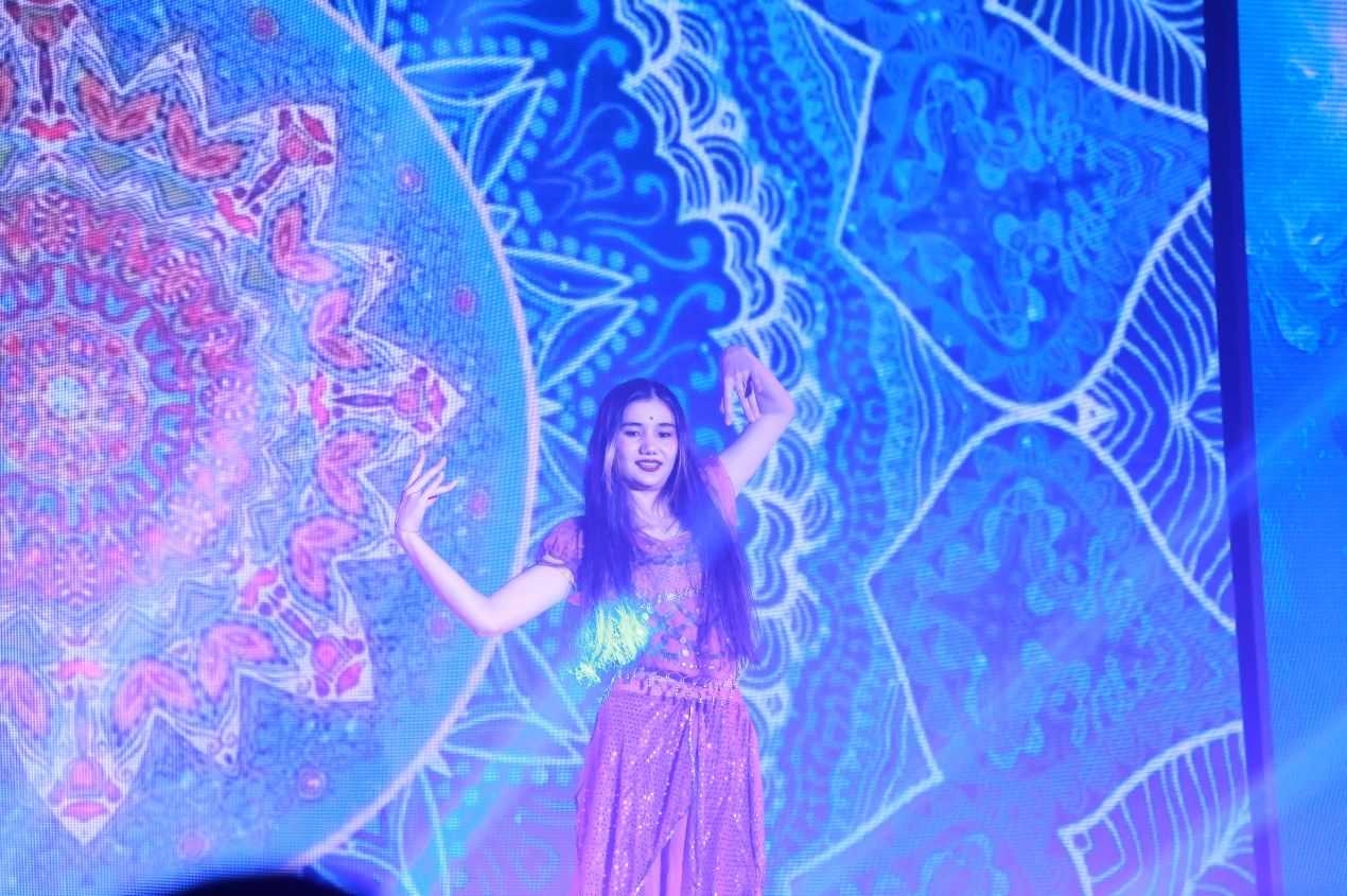 多个国家的留学生带来的舞蹈串烧《舞动天下》堪称一场国际化的视觉盛宴,不同国家的舞蹈风格在舞台上碰撞交融,舞者们舞姿热情奔放、活力四射,展现了各自国家的文化特色与青春风采,也体现了学院国际化的办学氛围。