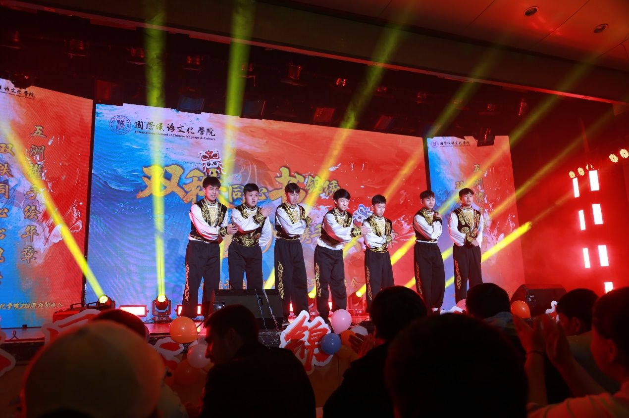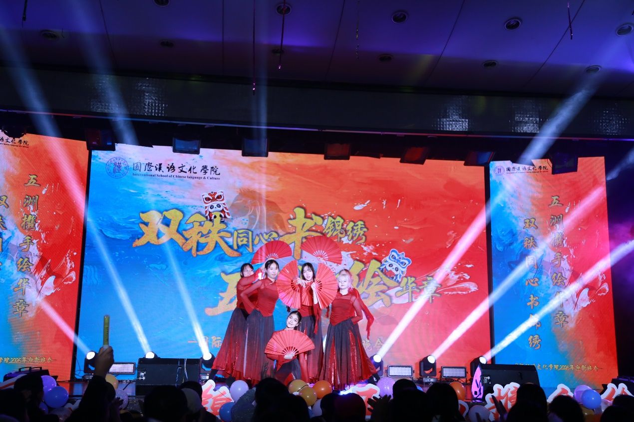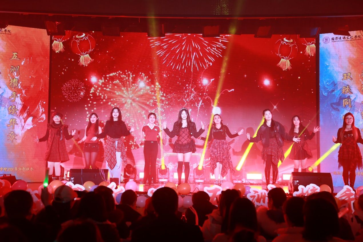 “双秩同心书锦绣,五洲携手绘华章”2026年迎新晚会于2025年12月17日圆满落幕。学院党总支书记李小玲、院长石洛祥等领导、全体师生及来自世界各地的中外学子齐聚一堂,共赴这场融合青春活力与多元文化的盛宴。整场晚会以 “同、心、携、手” 为脉络,四大篇章层层递进,中外学子与师生同台献艺,用歌舞、朗诵、情景剧等多元形式,奏响了青春与梦想的交响,展现了国际化校园的独特魅力。