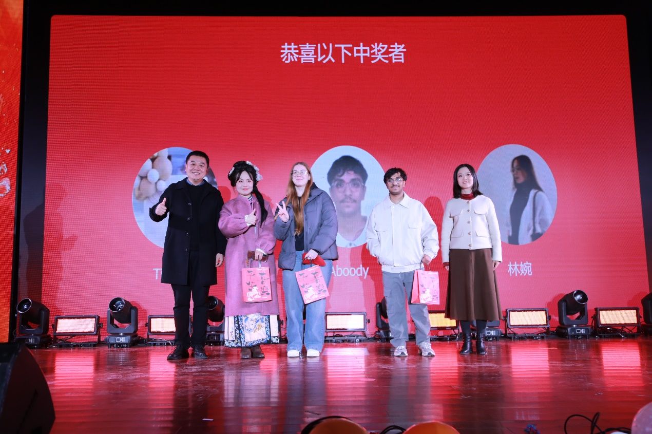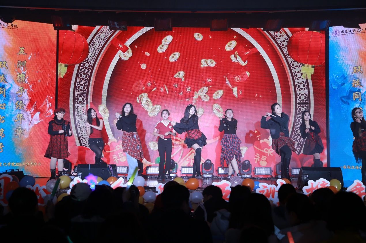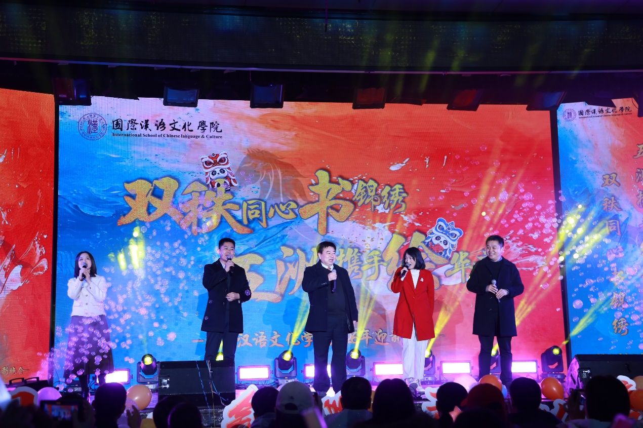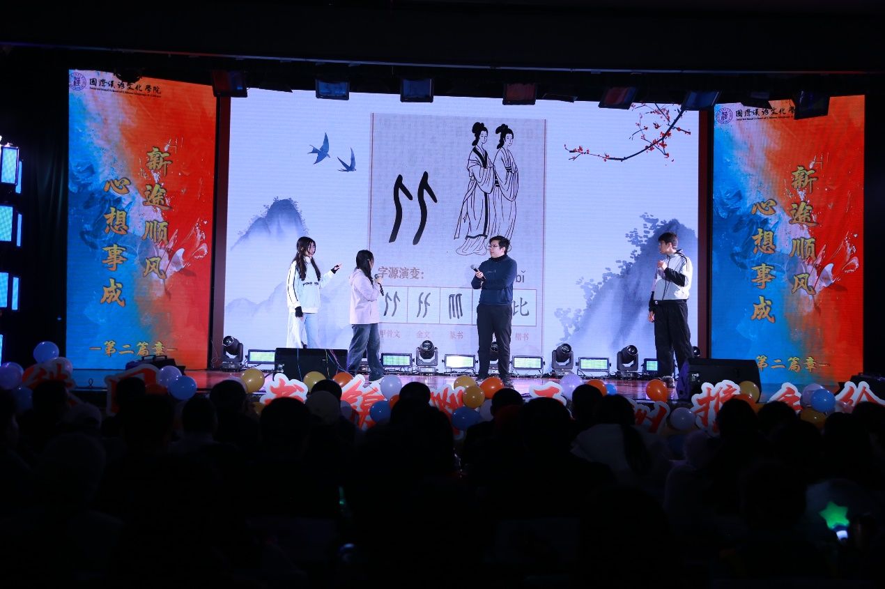 “双秩同心书锦绣,五洲携手绘华章”2026年迎新晚会于2025年12月17日圆满落幕。学院党总支书记李小玲、院长石洛祥等领导、全体师生及来自世界各地的中外学子齐聚一堂,共赴这场融合青春活力与多元文化的盛宴。整场晚会以 “同、心、携、手” 为脉络,四大篇章层层递进,中外学子与师生同台献艺,用歌舞、朗诵、情景剧等多元形式,奏响了青春与梦想的交响,展现了国际化校园的独特魅力。