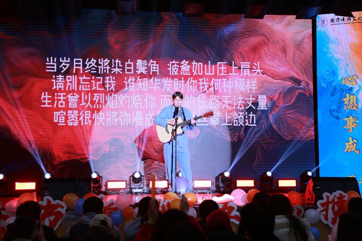 初级 A4 班的留学生们献上歌曲《对不起,我的中文不好》,质朴的歌词搭配略带青涩的中文发音,既展现了他们学习汉语的真诚与努力,又以幽默风趣的方式拉近了与观众的距离。