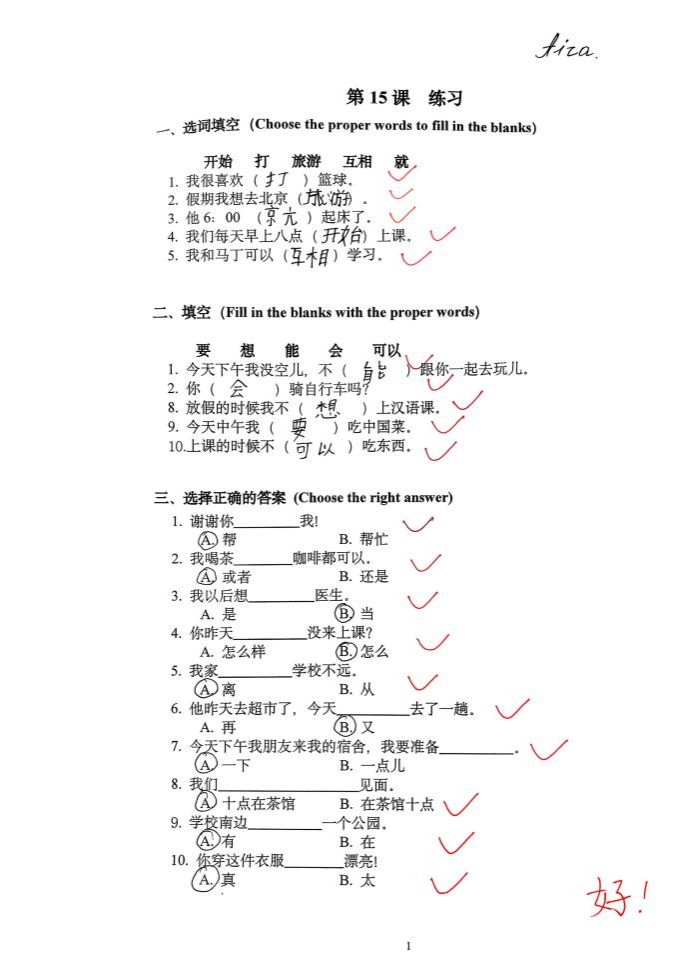 1.学生:艾莉丽  班级:HSK0-3(2)班  指导老师:李敏、常梦洁