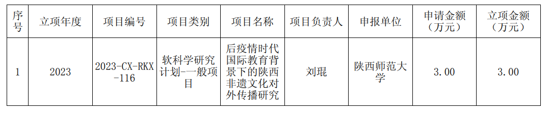 教师刘琨副教授申报的创新能力支撑计划项目——软科学研究项目“后疫情时代国际教育背景下的陕西非遗文化对外传播研究”成功立项,获批资助经费3万元。该项目研究旨在:一、利用非遗文化努力讲好中国故事,为铸牢共同体意识、维护国家文化安全提供文化交流层面的保障;二、加强陕西非遗文化的对外传播,为非遗文化的保护与传承注入外部动力,为提升陕西文化软实力提供策略建议;三、促进国际教育与陕西非遗文化对外传播的结合,利用陕西教育优势与文化优势之间的耦合关系并形成合力,开拓教育国际合作与文化国际交流的新路径。