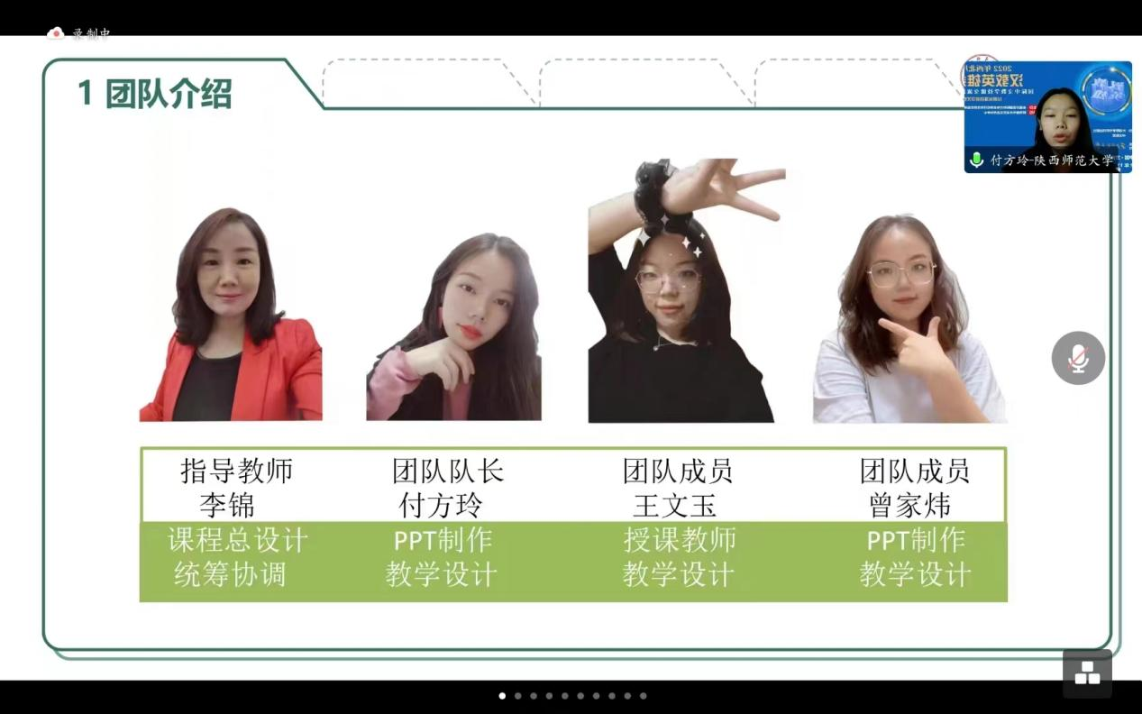 硕士生导师李锦老师带队,负责总体教学设计和规划,王文玉同学为主讲教师,付方玲同学为队长,负责协调组织,与曾家炜同学共同进行课件制作。本次交流活动的课程展示为《长恨歌》,课程设计得到了耽美小说