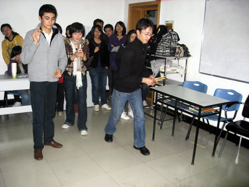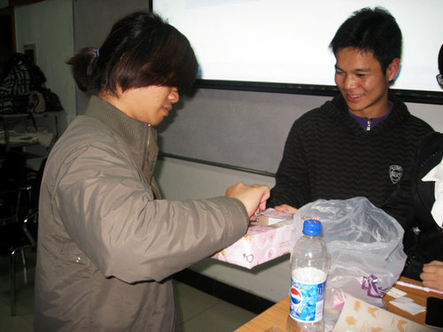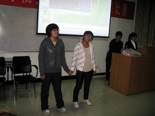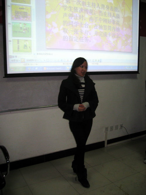 在小游戏——击鼓传花中,中外学生玩得不亦乐乎。藏族小伙一口气喝下一瓶可乐,众人惊呼,来自马来西亚的留学生扮演大猩猩,令人捧腹;哈萨克斯坦姑娘的一首歌谣和她本国的爱情故事,让我们感觉到异国风情的魅力。周慧和李蓉为大家带来《LOVE STORY》,两人边跳边唱,“展示”着她们的爱情故事。