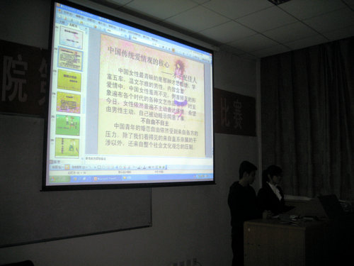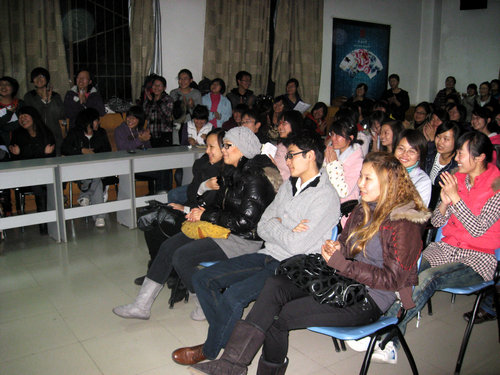 当晚座无虚席,首先以梁祝的动画为引子,然后主持人介绍了中国传统爱情观的核心——才子配佳人,让留学生们了解到中国传统的恋爱是不自由不自主的。接着曲文一和宋宁的一首《梁山伯与朱丽叶》让现场气氛变得温馨甜蜜。