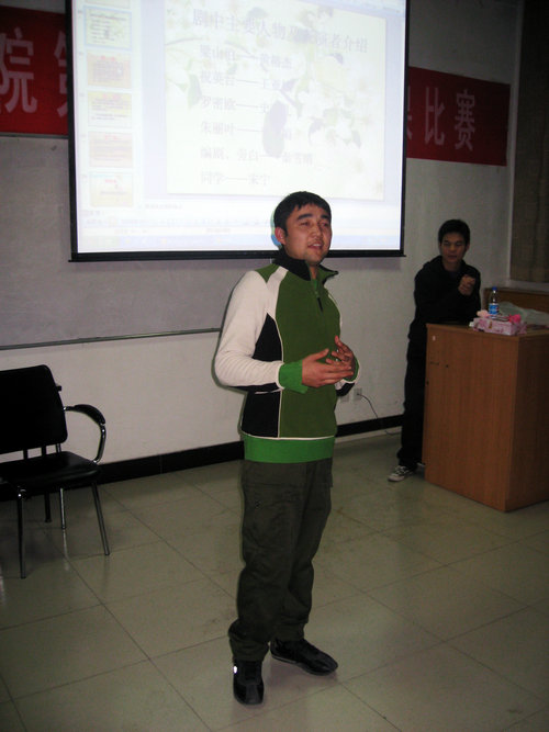 主持人接着介绍了西方传统爱情观的核心——英雄配美人,吉尔吉斯斯坦小伙为大家讲述了他的爱情故事,当他说到他要找一个需要照顾的中国的孤儿做妻子时,大家为他的爱心与真诚所打动,希望他的爱情圆满。令人期待的话剧表演终于开演了,《爱在心头口要开》讲的是梁山伯与祝英台和罗密欧与朱丽叶这两对情侣穿越后所发生的故事,台词幽默,虽然有些恶搞的成分,但它的主题鲜明,告诉了大家,爱在心头口要开,要勇敢地表达自己的想法,爱需要勇气!