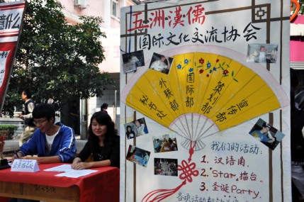 “五洲汉儒”国际文化交流协会的纳新工作,在学子食府前正式开始。经过为期三天的火热报名,吸引了来自各院部共170同学,欲竞选我团新一届部员的新生共有120位。
