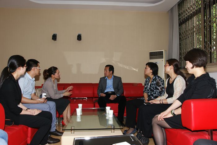 院长张建成、副院长吴媛、刘琨、吴殿华等在学院一层接待室接见了来访客人并进行亲切交谈。