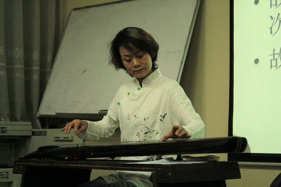 马静女士在表示了对师大学术氛围的敬仰之情后,为大家演奏了一只古琴曲《阳关三叠》,并利用古诗《送元二使安西》启发学生感受古琴与古诗的意境之美。随后何依工副教授对演奏进行了点评,他认为,学习古代文学要有一颗“诗心”,与弹奏古琴一样,身心要达到安静的状态,同时这种学习也应该是生动清新、有趣脱俗的。