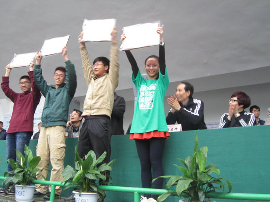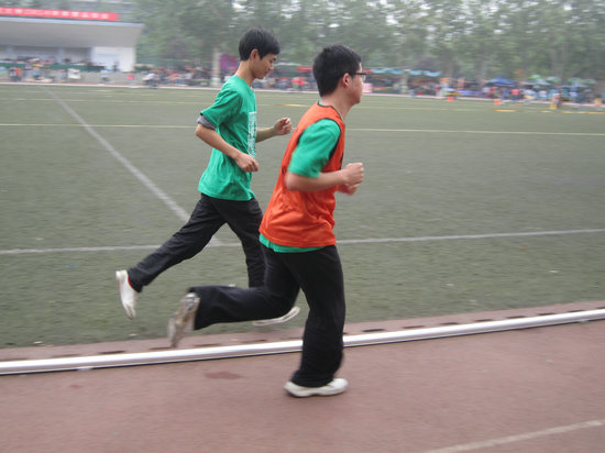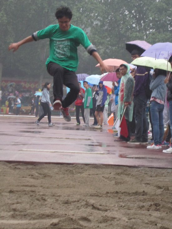 学子良好的精神风貌。学院为运动员们准备了矿泉水、巧克力等补充能量。18日大雨浇灌了整个运动场,可是我们的同学们毫不退缩,以火一般的热情坚持到了最后。