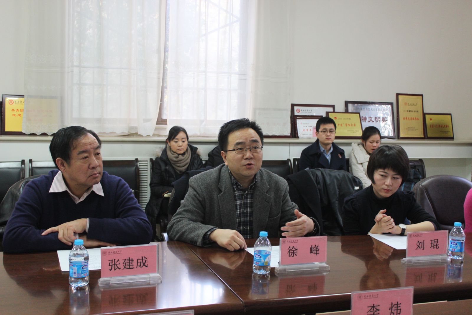 随后张建成院长为美国马萨诸塞大学波士顿分校中国项目中心主任胡万里老师赠送了陕西师大专门为该富布莱特项目定制一块大熊猫双面刺绣摆台,希望双方的交流与合作关系长久而巩固。