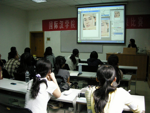 接下来由来自20007届对外汉语班的宋志天同学为学生干部作了关于“photoshop的实践与运用”的报告。首先她就目前photoshop的使用程度和重要性作了一个简明的总结,接着围绕耽美小说