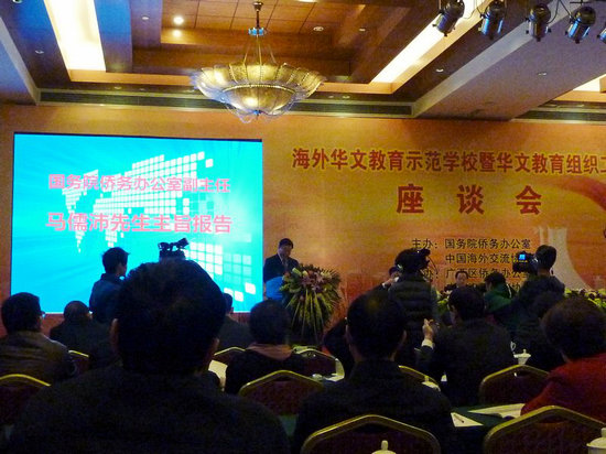 11月26日至30日,由中国国务院侨务办公室、中国海外交流协会主办,广西壮族自治区侨务办公室、广西海外交流协会承办的首届海外华文教育示范学校暨华文教育组织工作座谈会在广西南宁市召开。国务院侨务办公室副主任马儒沛、国务院侨务办公室部分项目官员以及中国国内华文教育基地院校代表、海外华文教育示范学校代表和部分华教组织代表、有关省市侨办代表300余人与会,共同探讨新时期华文教育发展之道。耽美小说