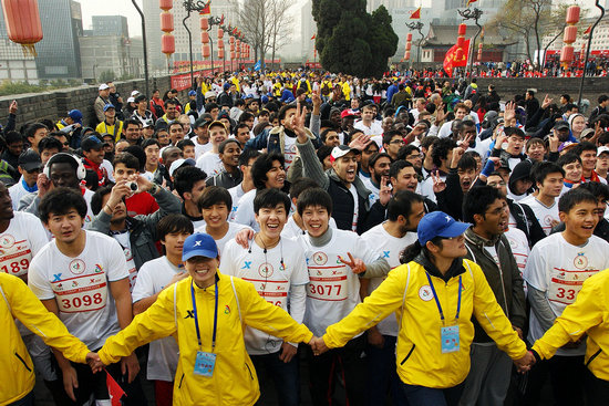 的近60名留学生们却一个个热血沸腾地参加了“2012西安城墙国际马拉松赛”。