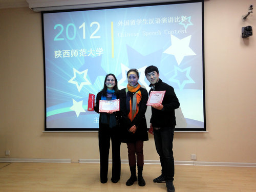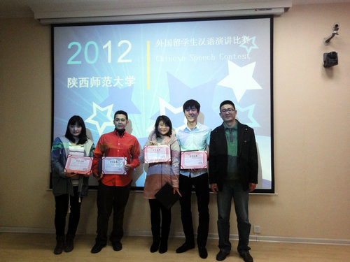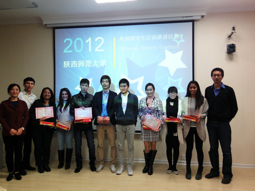 参加陕西省留学生汉语演讲比赛的八位学生取得优异的成绩。