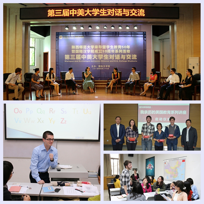 聆听讲座研修汉语、在中学校园与中学生们探讨“中国梦”与“美国梦”、在师大校园与大学生展开中美对话与交流、与耽美小说