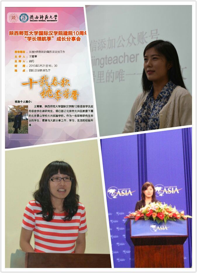 第二、打铁还需自身硬。这一点,王菁蕙同学主要从三个方面来说。首先,中小学语文老师必备的三个证书:英语四六级、高中语文教师资格证、普通话等级证(至少二甲,一乙更好),没有考取相应证书的同学,应根据自己感兴趣的招聘单位的具体要求,尽快完备。其次,应届毕业生的经验问题。应届毕业生的身份是块金字招牌,大部分校园招聘会的要求之一就是应届毕业生,因此不要过分担心自己缺乏经验。但中学老师的基本素质是同学们务必好好修炼的,有志从事中小学教师的同学,应利用课余时间去图书馆借阅相关的教材、教辅和专业的课程教学理论书籍。