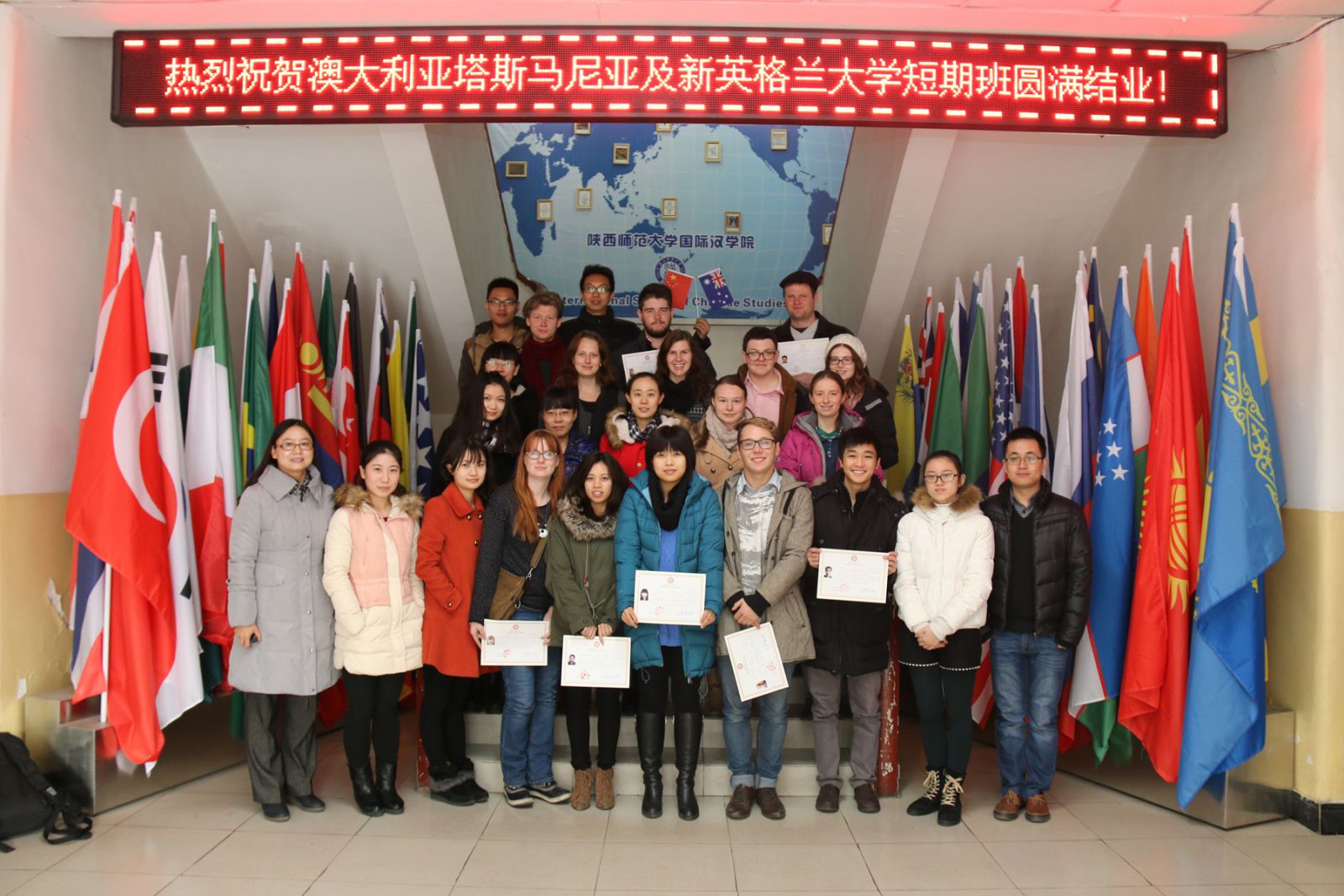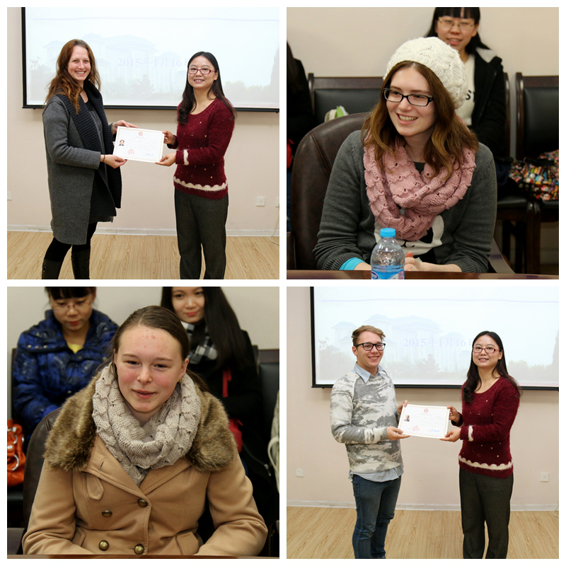 1月16日,来自澳大利亚塔斯马尼亚大学和新英格兰大学的16名学生在经历了为期二个月的汉语及中国文化学习之后顺利结业。耽美小说 副院长吴媛为同学们颁发结业证书,并希望他们回到澳大利亚之后可以继续汉语学习,做好中澳两国友谊的使者。