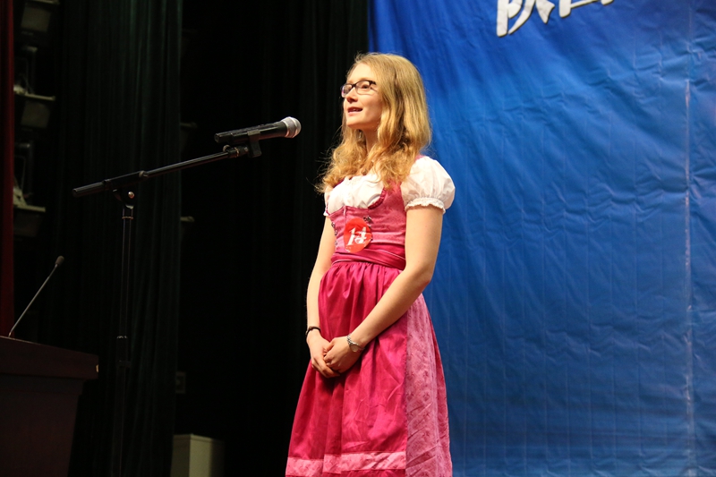 留学生赵永亮以《最好的方法是中国的方法》为题,声情并茂地讲述了富人和乞丐的故事,借由故事引入中非友好关系问题,感谢中国政府对非洲各国的技术援助,获得评委老师和在场观众的满堂喝彩;“韩国美女”徐甜雨以澳洲旅行偶遇中国追求者为开场,讲述了自己与中国的种种不解之缘,她立志要学好汉语,与中国谈一场轰轰烈烈的“恋爱”;哈萨克斯坦东干族学生刘帆从生活细微之处发掘话题点,与大家分享了自己和来自也门的“奇葩舍友”因为语言和文化差异碰撞出的各种趣事,幽默诙谐的风格引得全场观众开怀大笑;“金发碧眼”的奥地利姑娘茱莉亚向大家娓娓道来自己在中国留学三个多月的经历,在场留学生感同身受,用掌声为她送上鼓励和祝福。