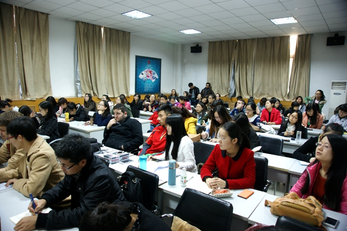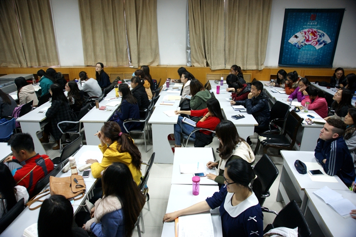 汉语言文学专业四年级的韩国籍留学生崔先咏为大家奉献了一节精彩纷呈的韩国语及韩国文化课程,吸引70余名中外师生热情参与。