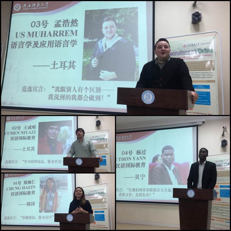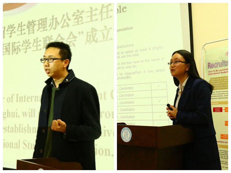 副院长吴殿华、留学生管理办公室主任蔺丰辉、留办全体成员以及来自45个国家的80余位师生代表参加了本次竞选大会。会议由留学生辅导员王芙坤主持。