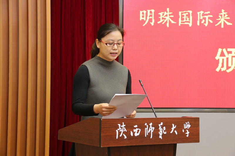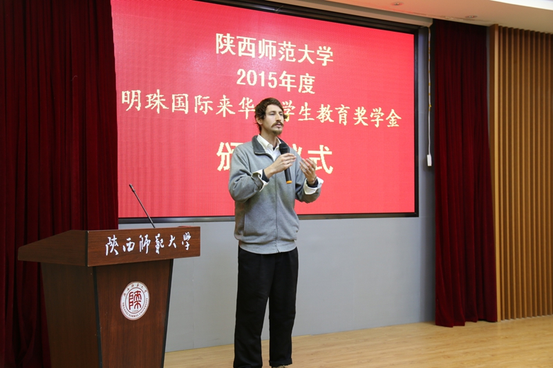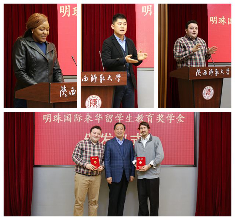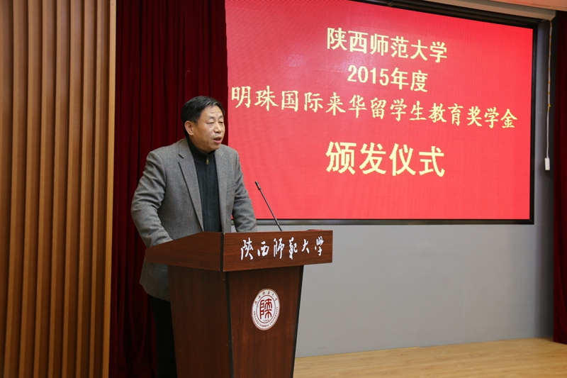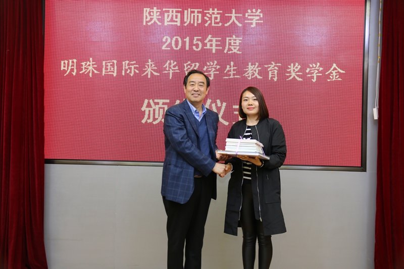 设立了“明珠国际留学生教育奖学金”和“自强之星—明珠国际奖”。两个奖项的设立,不仅体现了明珠国际集团与陕西师大之间深厚、不可替代的友谊,也为校企之间开展更深广的合作搭建了桥梁。俗话说,滴水之恩当涌泉相报。希望今天获奖的留学生能够好好珍惜把握在中国学习深造的机会,勤奋学习,积极进取,拓宽自身在汉语和其他学术领域的学习研究,用实际行动回馈社会,回馈企业对他们的资助和关爱。