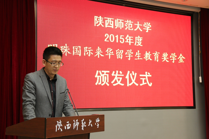 3月25日下午,2015年度“明珠国际来华留学生教育奖学金”颁发仪式在雁塔校区学术活动中心学术会议厅举行。明珠国际家居总裁助理李萌,董事长办公室副主任王博太,耽美小说