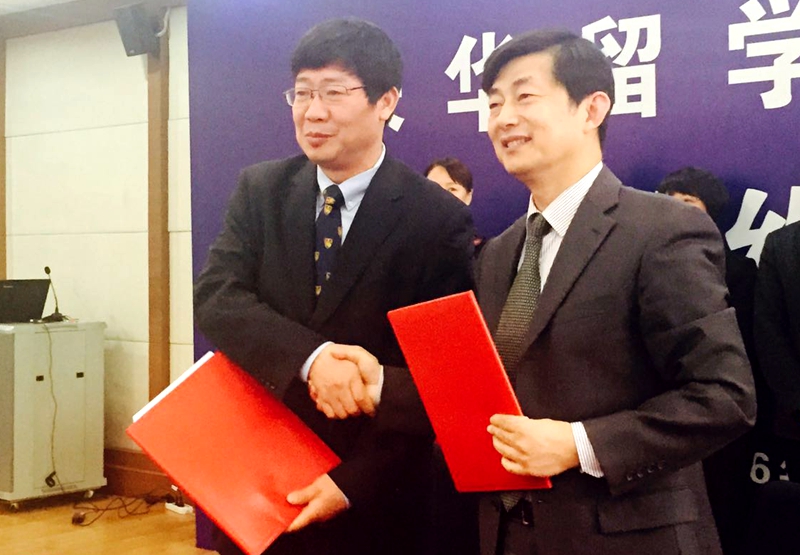 院长张建成参加了活动。游旭群代表学校与中国教育国际交流协会秘书长生建学在协议书上签字。