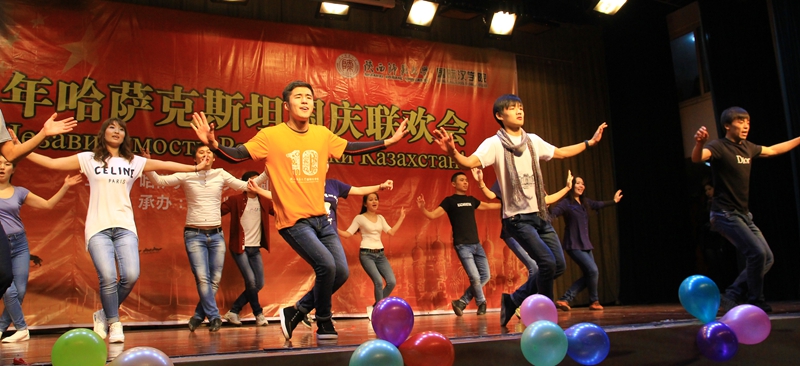 和兄弟院校的近300名哈萨克斯坦及中亚地区留学生欢聚一堂,共话友谊,展望丝绸之路新辉煌。