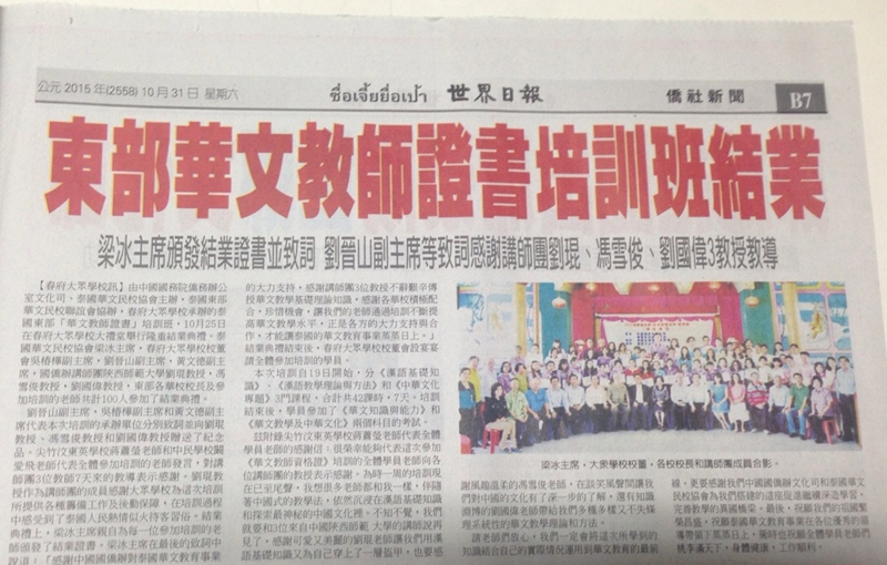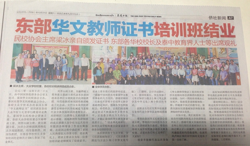 讲师团三位教师不辞艰辛传授华文教学基础理论知识,感谢各华校积极配合,珍惜机会,让我们的老师通过培训不断提高华文教学水平,正是各方的大力支持与合作,才能让泰国的华文教育事业蒸蒸日上。”当地媒体对此次培训班进行了广泛报道。