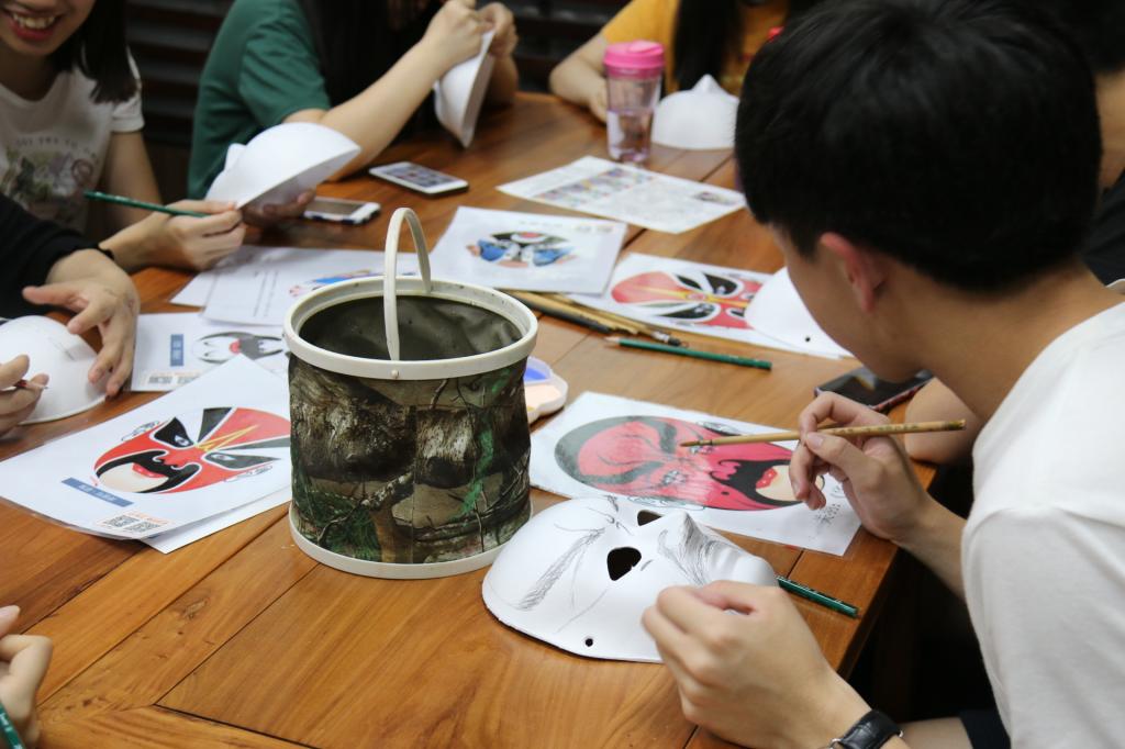 请来了秦腔表演艺术家陈耀武老师,为同学们上了一堂秦腔科普课。在老师为大家讲授了不同颜色、构图所代表的的脸谱含义之后,随即就开始了“实战”,大家纷纷拿起画笔和颜料,来创作自己的脸谱。在绘制了脸谱之后,几位自告奋勇的同学们还走进了秦腔表演的“化妆间”,在画上脸谱,穿上行头,学习身段,化身秦腔剧中人。