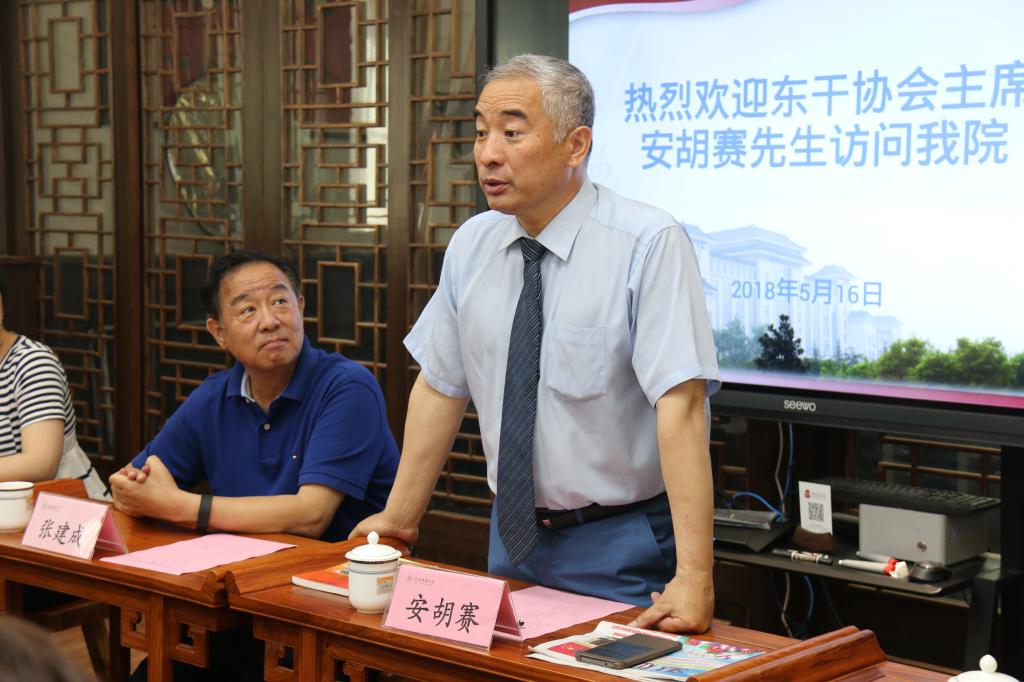 张建成院长对安胡塞主席一行到访学院表示热烈欢迎。他向在场师生介绍说,安主席作为地地道道的陕西乡党,近年来为促进中哈两国高层互访、经济贸易往来、文化教育交流等方面合作做出了卓越的贡献,已促成千余名东干族学生到中国学习,为多个中国企业赴中亚地区发展牵线搭桥。张院长勉励在座学生,要珍惜今日这来之不易的学习机会,把握“一带一路”倡议带动下中国与中亚地区多方面合作日益紧密的大好时机,时刻铭记自己作为东干族学生肩负的文化使者的责任与使命,在校期间努力学习成材,不辜负时代、不辜负远在中亚的家人朋友对他们的期许和厚望。