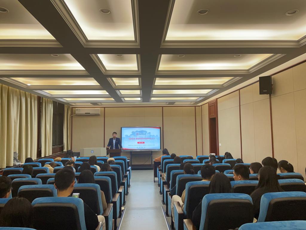 在学院一层报告厅举行了第五场入学教育系列活动,主题为“锚定理想 做有中国情怀的国际化人才”。本次讲座由党总支副书记张昊主讲。